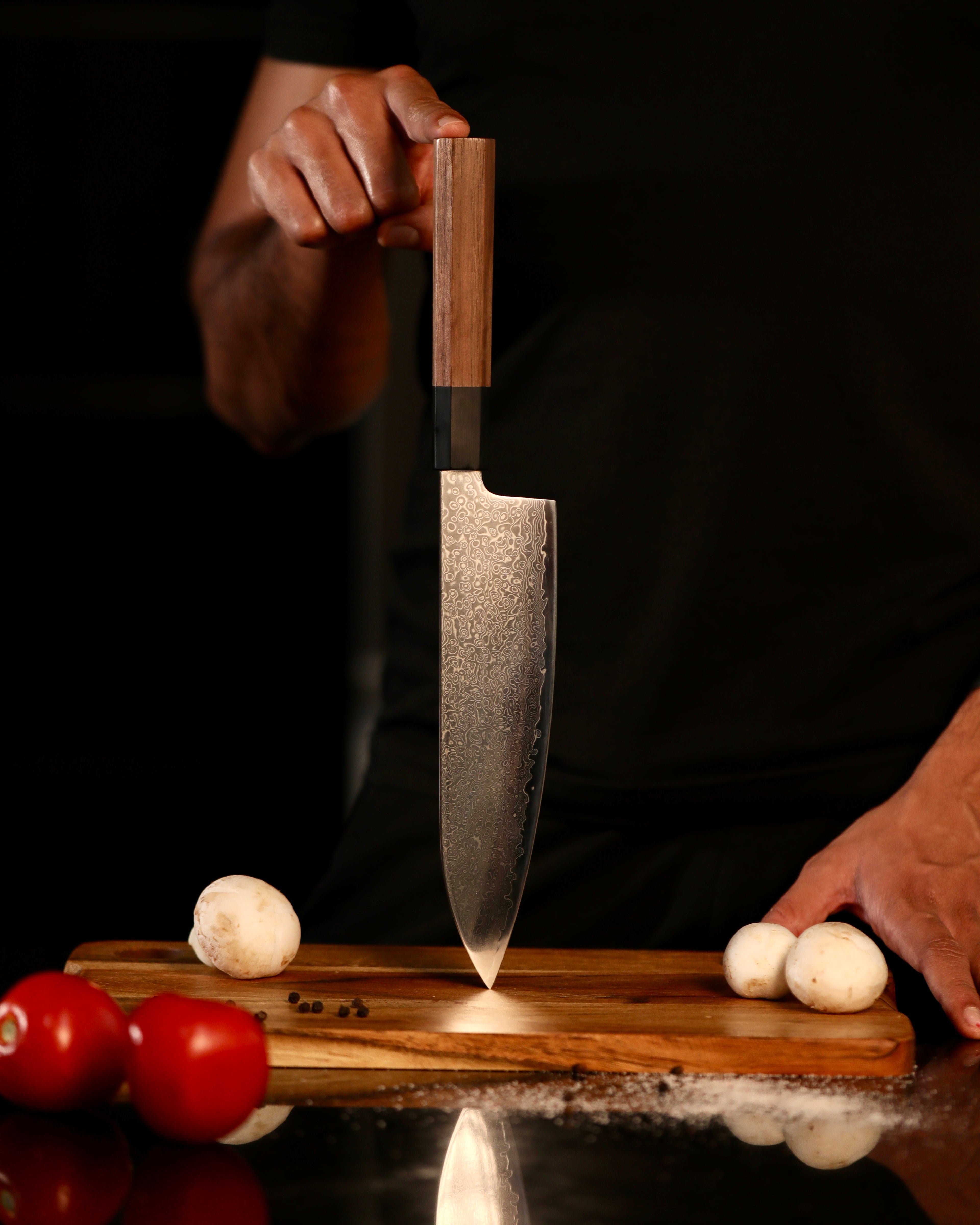 Crafted from 67 layers of Damascus steel, this chef’s knife delivers exceptional sharpness, durability, and balance. Designed for those who value precision, performance, and understated elegance in every cut.