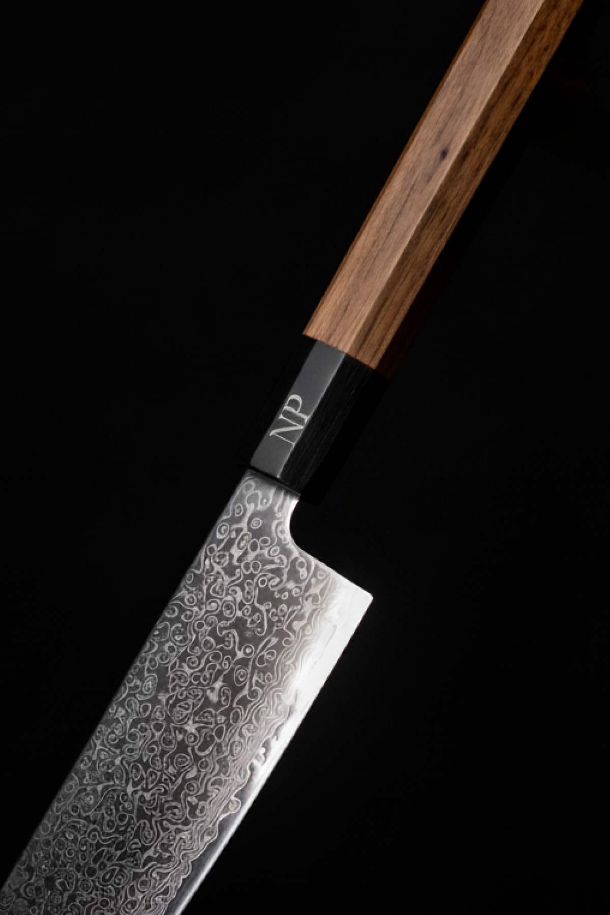 - Walnut wood meets black G10 in an ergonomic octagonal form.