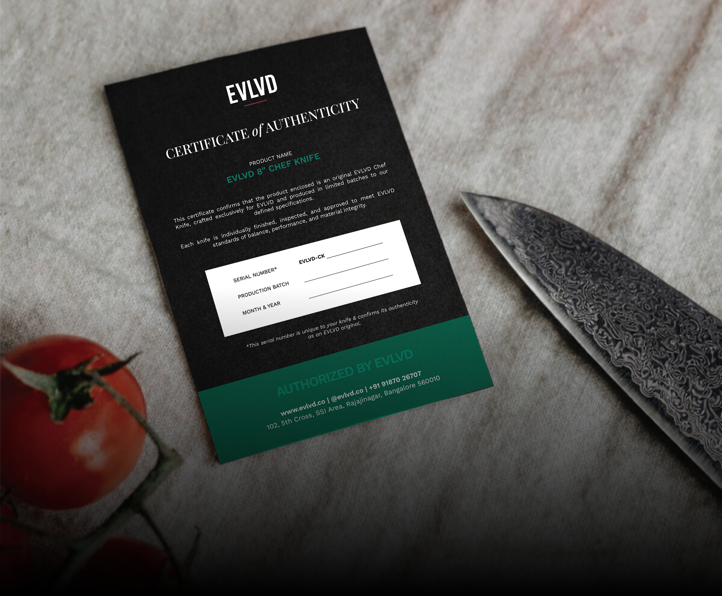 Every EVLVD piece is accompanied by an official Certificate of Authenticity—verifying originality, materials, and craftsmanship.